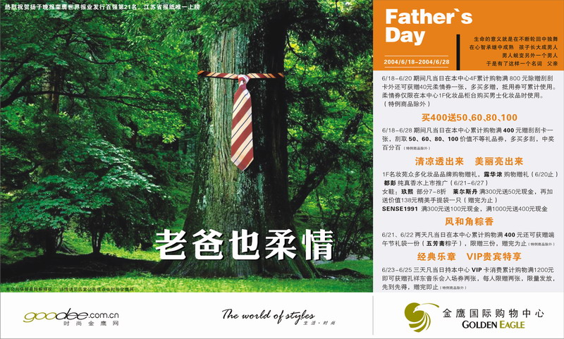 主题:爸爸购物 八八折,折上有礼 情不断!
