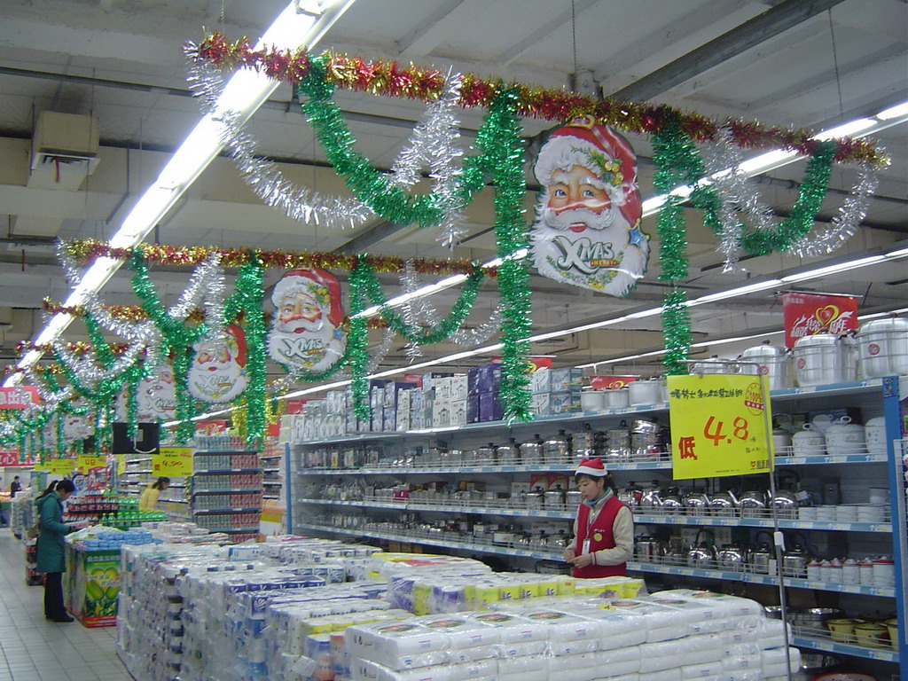怎么说呢?这张图虽然圣诞的气分不是很浓厚,但起码他努力了啊?给我的感觉你们的卖场挺大,货架很整齐给顾客的感觉就是很舒服!!当小弟还是要提醒您!可适当的改变一下场场的装饰色彩,让卖场气氛变得浓郁些!这样就不会显得比较冷清了!!