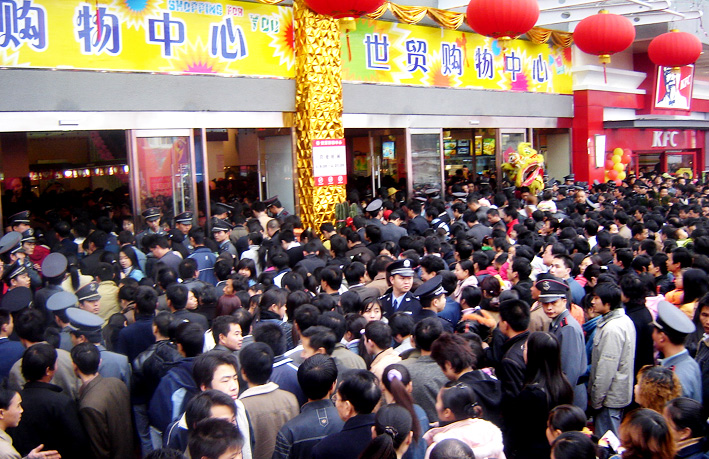 我们06元旦做的开业,广场上的人群,呵呵,附近派出所几乎出动了全部的警力,还有自己商场的保安跟临时的保安负责保全工作。。
