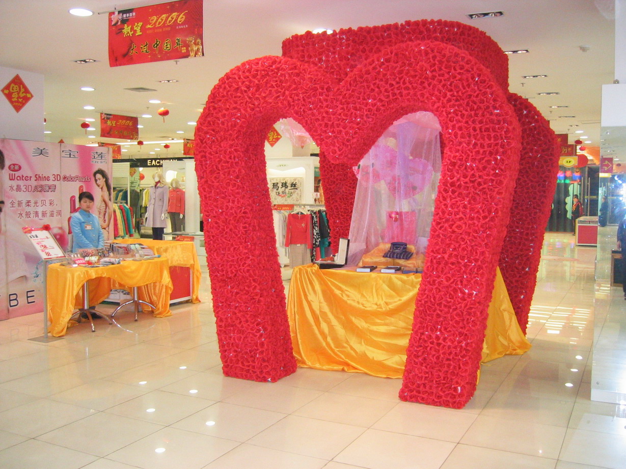 敢问楼主,你的那个“形似麦当劳大门”的装饰物是用什么材料做的?跟她配合的有什么活动呢?
