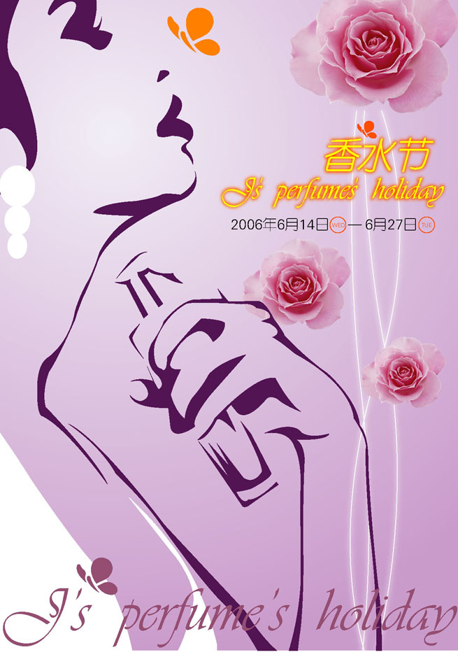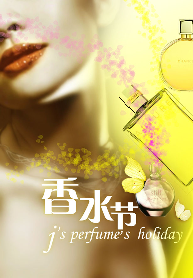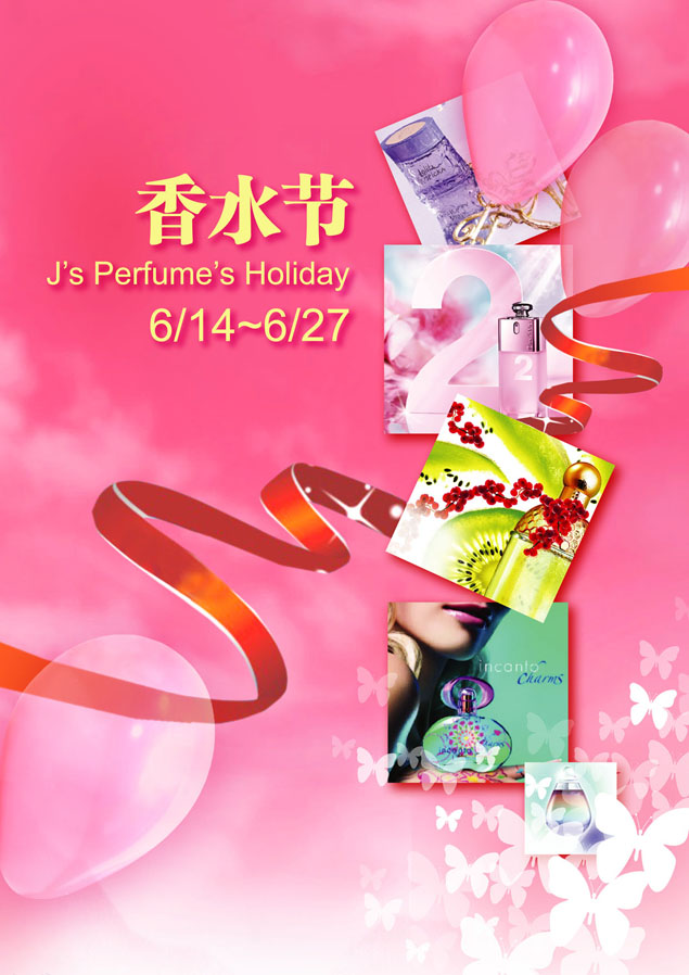 首先看上去是一个节日,是一个有关香水的节日,那么香水如何过节日呢?这就是一个表达的技巧了。要让人一眼就可以被吸引住并且明白你要说什么,要向他们传达什么。