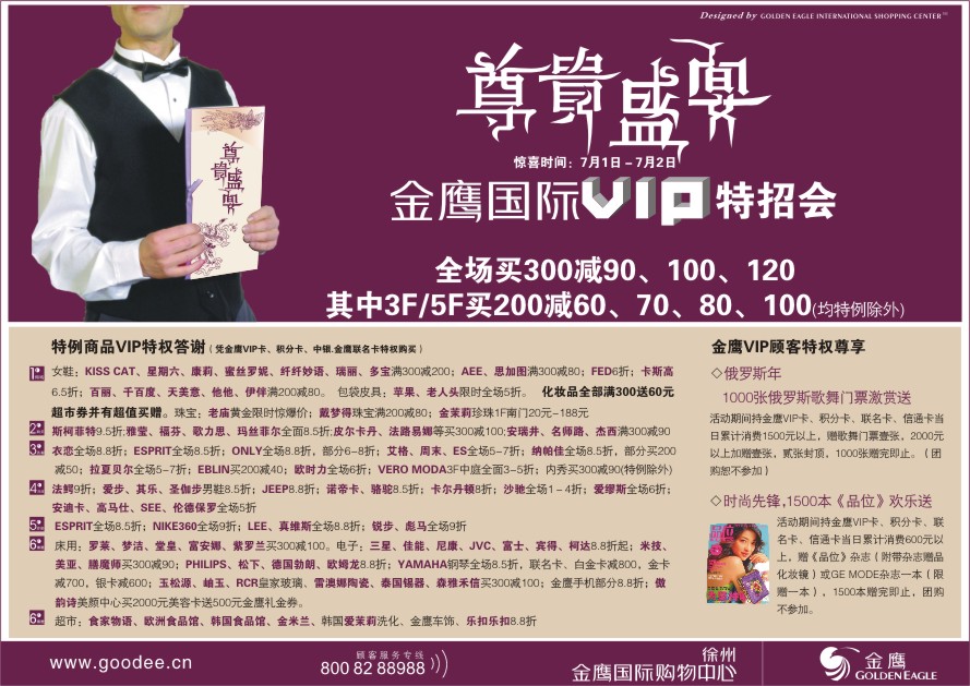 此处特别说明.金鹰的平面做的最好的是徐州!别的分店到也不见有太多出彩之处.
