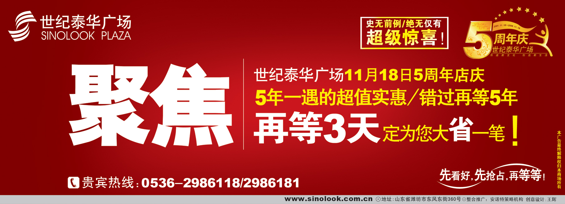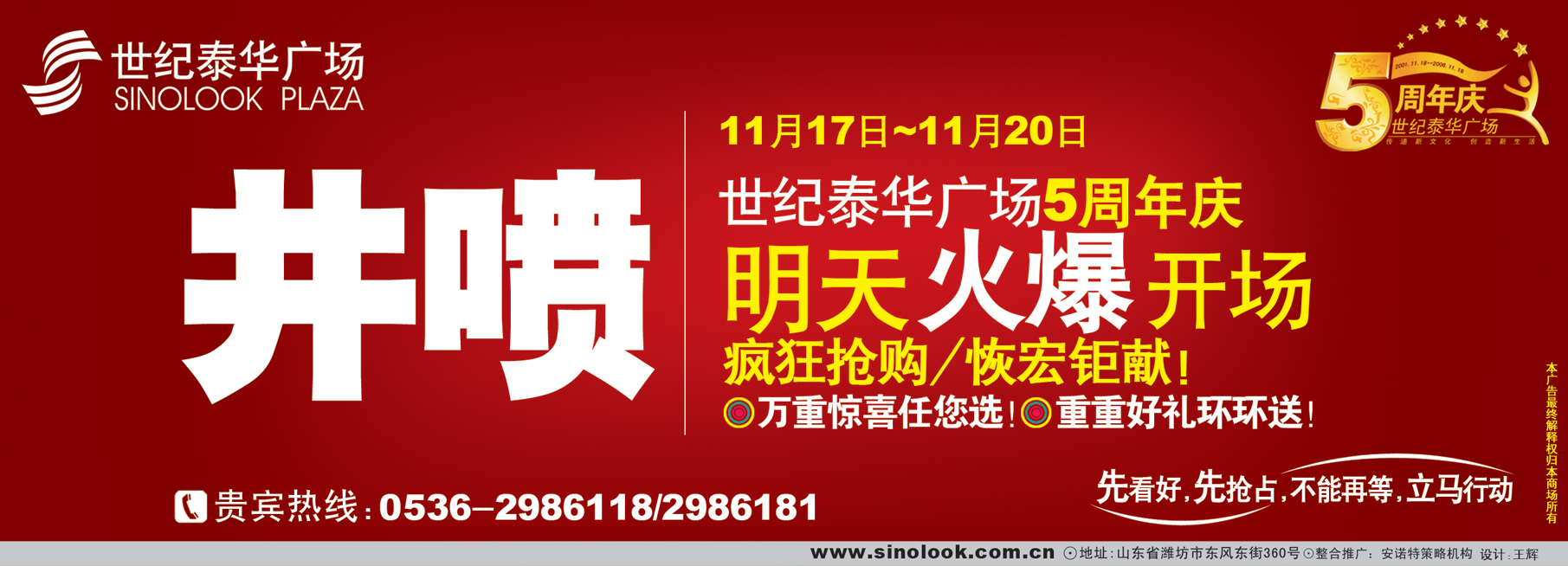 11月18日,潍坊世纪泰华五周年店庆预热方案,请大家欣赏。