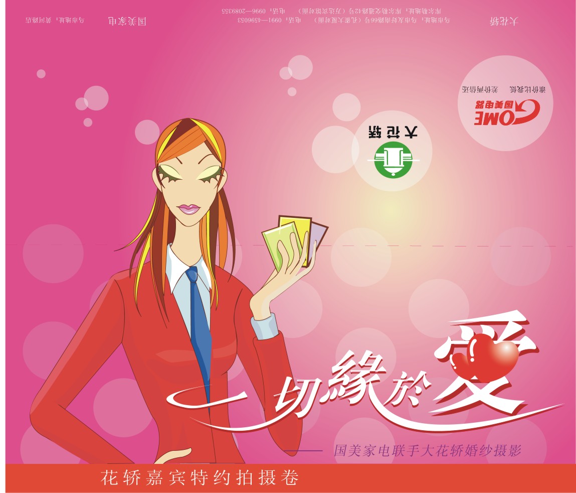 我这是我闲时给一家婚纱影楼作的设计!希望大家都来批批!谢谢!