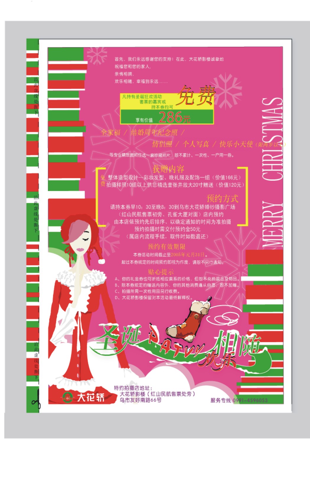 效果是有圣诞节的感觉 可是圣诞的红绿是不是和婚纱没有什么关系呀 这是我个人的一点点偏见 我希望能和大家多探讨营销方面的知识!!!