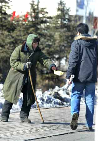 遇到乞讨者:遇到要钱的就给他(她)点饭,遇到要饭的就给他(她)点钱