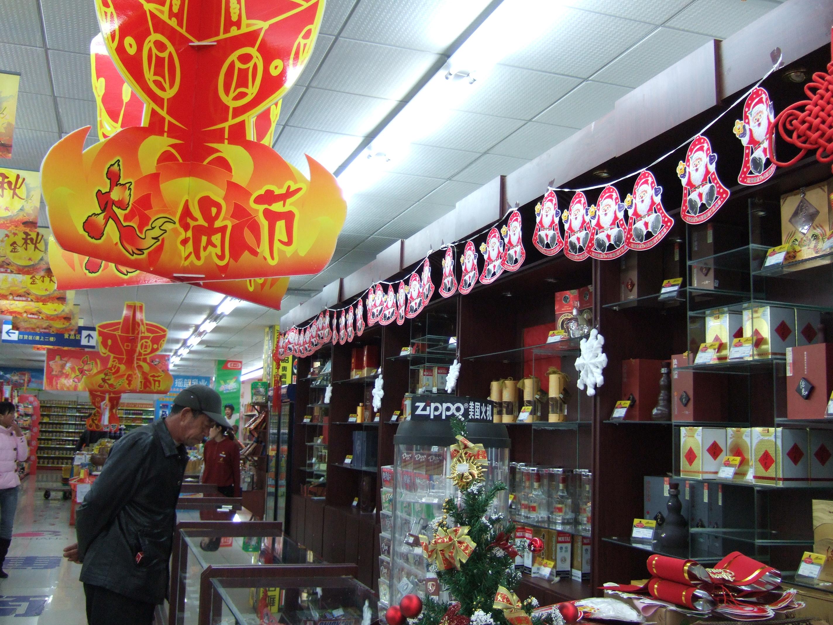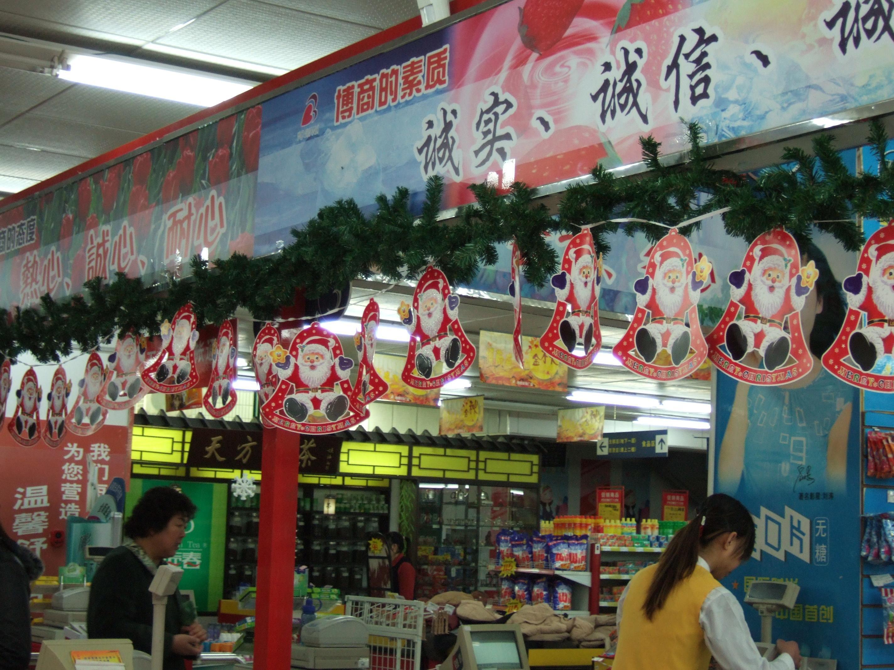 我要求进行圣诞节的商美布置。