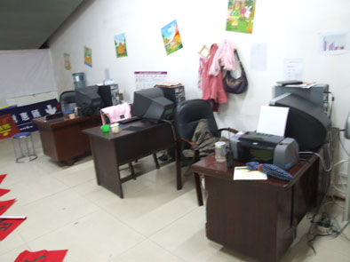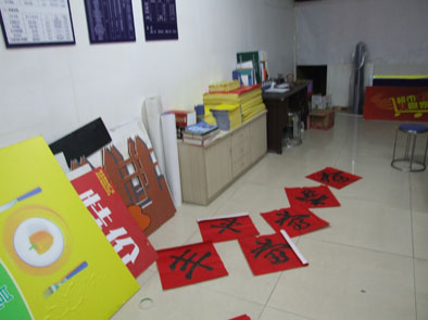 条件不错吗,还有喷绘机呢,就是办公室在扶梯的下面.