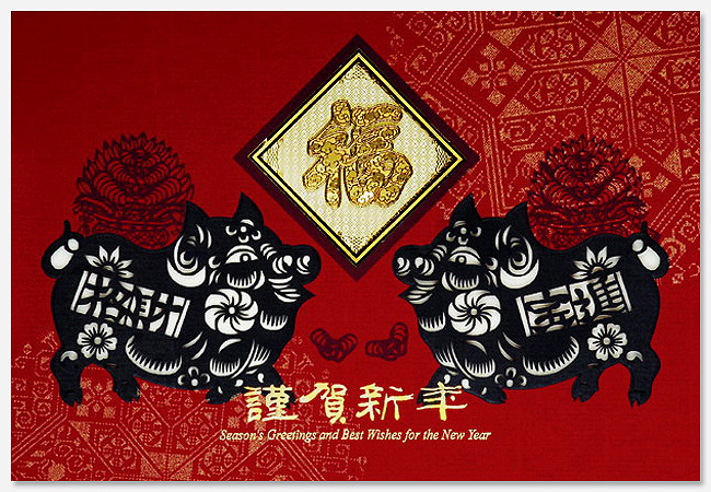 骏马金鞍跨上康庄路;肥猪元宝迎来大丰年。