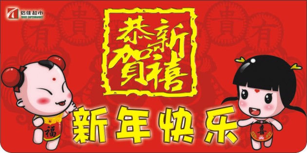 第二张:图和文字搭配不错,可是没LOGO,而且"新年快乐"四字字体不合适