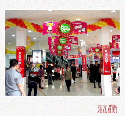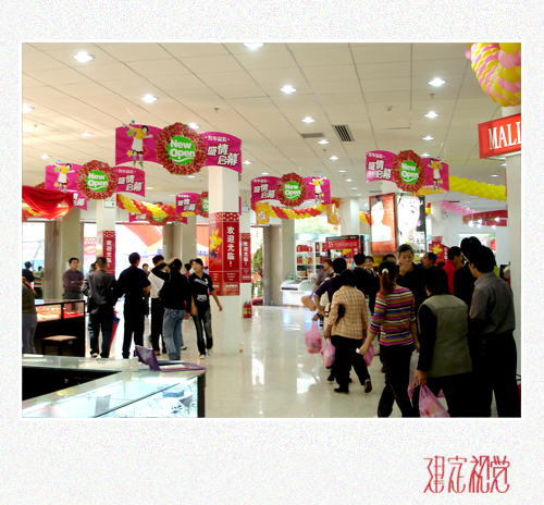 好象刚开业噢,商场的柱子处在原始状态呢!