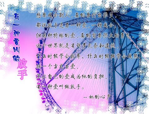 感情的事情,总是很无奈吧。唯有让时间来修护伤口。放弃也是另一种美,但是不到最后关头真的不能放手。