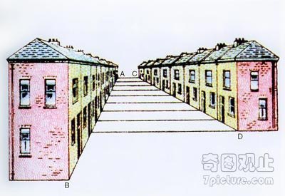 在这幅图像中,前面的线段短一些,对吗?其实,这两条线完全是一样长的!(不信?用尺子量量看!)