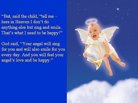 上帝说,“你的天使每天将会为你歌唱和微笑。你将会感受到你的天使的爱,你会感到快乐。”