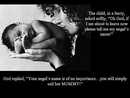 上帝回答说,“你的天使的名字并不那么重要,你可以简单的叫她“妈妈”。