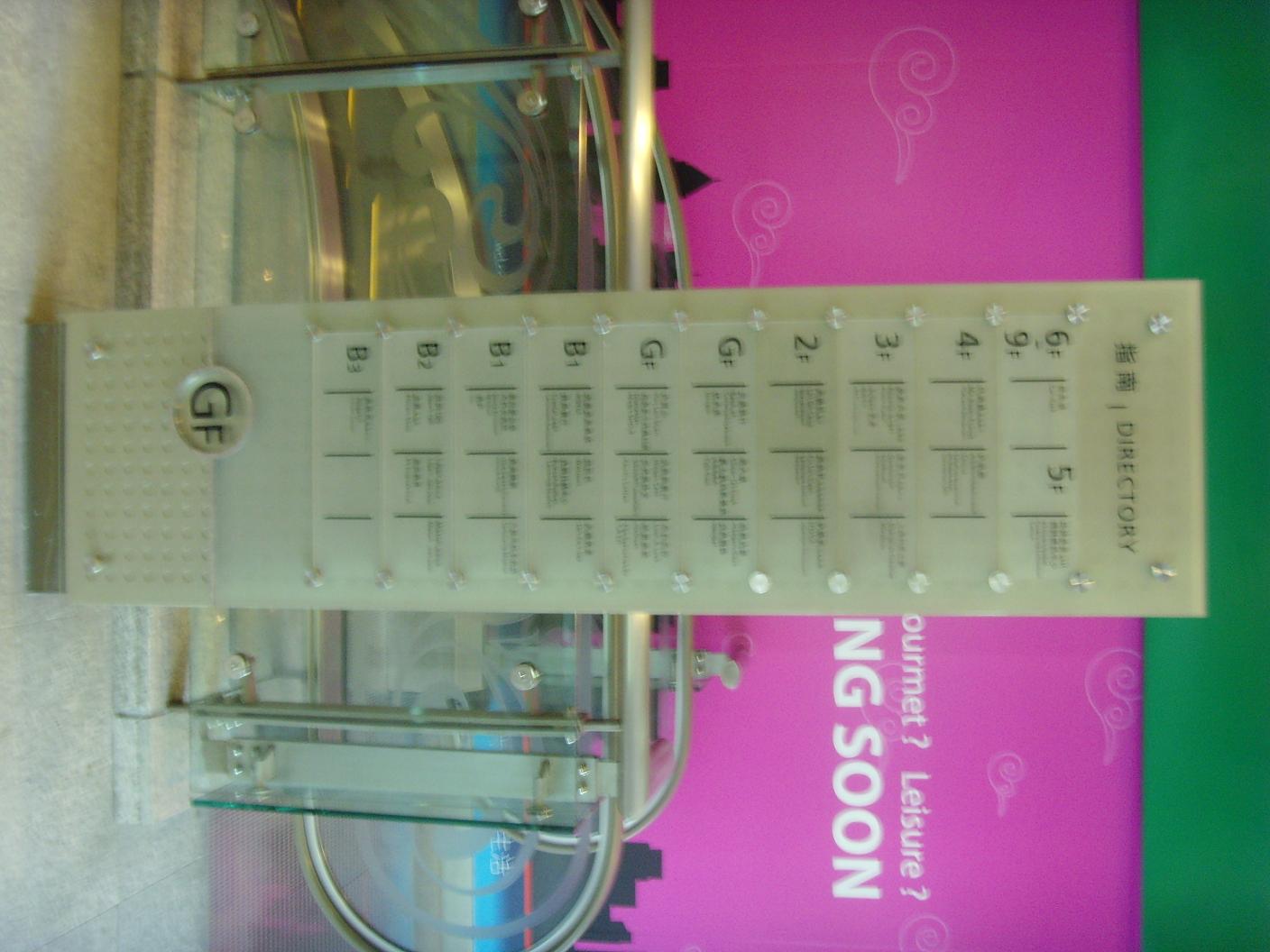 一个导视牌 相信最少 200 元 (双色板中间2CM的PVC) 双面再加点压克力 不敢想了 呵呵 不过还要赞美下好看好看!! 呵呵建议采用 写真(压膜)附PVC(1CM)后 大气简单 耐用更换方便!!