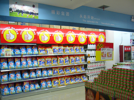 当然也希望该超市在纵向排列上下点工夫,图片上有一半以上已做到,可以看出该点商品管理方面还是有人,但不够细致。