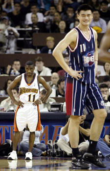 "黄金搭档啊 哈哈 "联盟第一高 和联盟第一矮