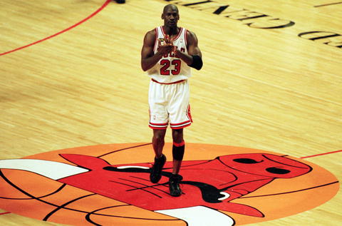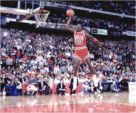 他是迈克尔·乔丹,他是一个飞行的神话;他为篮球而生并成为人们心中永不失色的光芒之神;