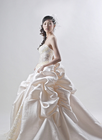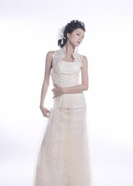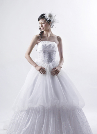三楼第一款,设计师的灵感来自希腊雅典的服饰。它突破了传统婚纱的观念。