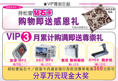 活动期间持松雷财富/钻石卡贵宾于南岗、道里店两店(特例商品除外)