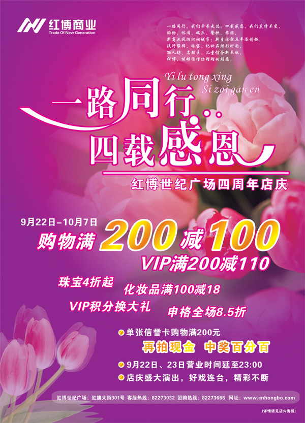活动期间,当日在商场1-3楼购男女服饰、针织床用、四鞋箱包、童装童玩满200元即省100元现金、满400元即省200元 现金,以此类推。(5折或5折以下商品不参加)