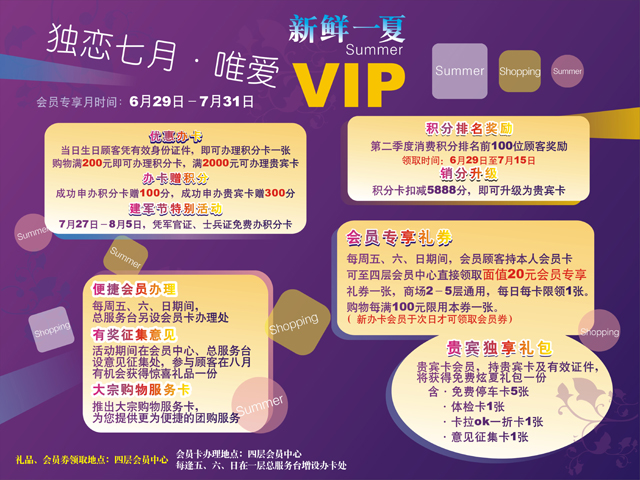 | 乌鲁木齐王府井—““独恋七月·唯爱‘VIP’”促销活动”(7月20日-7月22日)海报图片