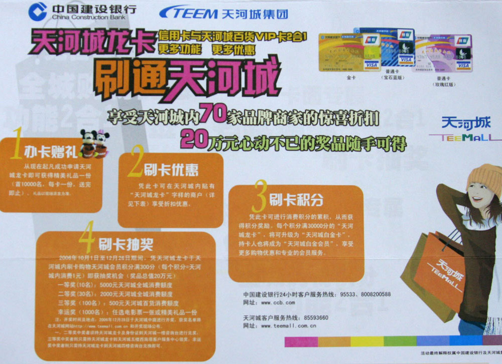·2006年10月1-2006年10月7日期间在三店持松雷东方财富卡/钻石卡里面的银行存款单店消费满300元赠送万达影城电影票一张,满500元送两张。(超过500元,也只送两张)