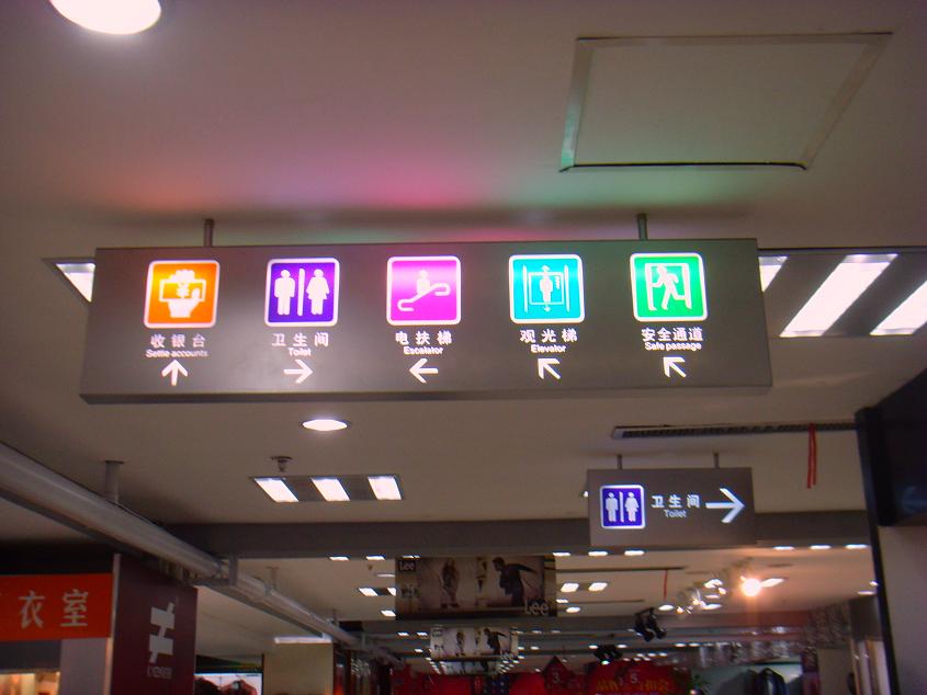 随着人们的消费方式的变化,商场和超市越来越向综合型、超大型的方向发展,以便于消费者能够一站式将货物全部购齐。但是,由于这些大型购物商场内部是一个相对外界独立的环境,顾客用于辨别方向、位置的参照物相对较少或陌生,因此如果标识导向系统建立得不够完善,消费者极有可能要多花时间、人力寻找目标位置(当然,那些商场常客除外)。所以有时我们会发现消费者向销售人员询问:卫生间在哪儿,电梯在哪儿等等。我们知道,零售业的竞争正日趋激烈,创造人性化的购物环境正逐渐成为管理层追求的管理目标,可是对一个很容易让消费者迷失在楼层较多、销售柜台错杂的环境中的商场,不能说实现了这个理念。