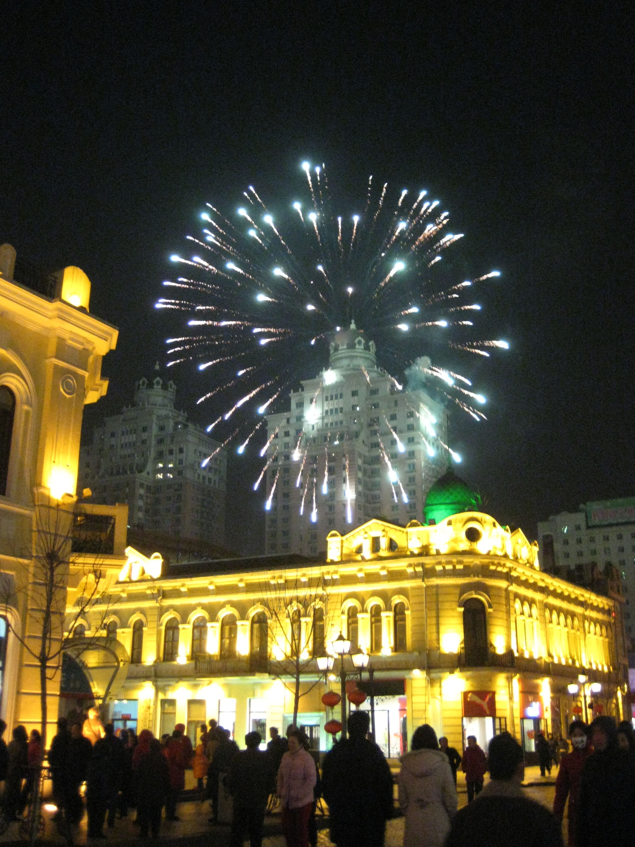 元宵佳节,市民不约而同的簇拥在中央大街上,人潮汹涌统一朝防洪纪念塔流动,沿途不少商家燃放烟花,吸引顾客拍照留影~