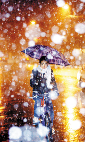 2008年2月28日晚9点开始,伴随着阵阵雷鸣,点点雪花夹杂着雨点从空中落下。据观察,从天空落下的“雪”粒呈晶体状,落地即化,不像冰雹颗粒那么坚硬,而下降速度又比雪花快。随后“雪”粒停歇了一段时间,晚11点20分左右,片片雪花又飘然而至,并越下越大。 至凌晨0点左右,记者看到,房屋、车辆、地面都已经堆起了积雪,天空中白茫茫一片,能见度很低。草坪上的积雪约有1厘米左右,而车顶上更厚,达到3厘米左右。