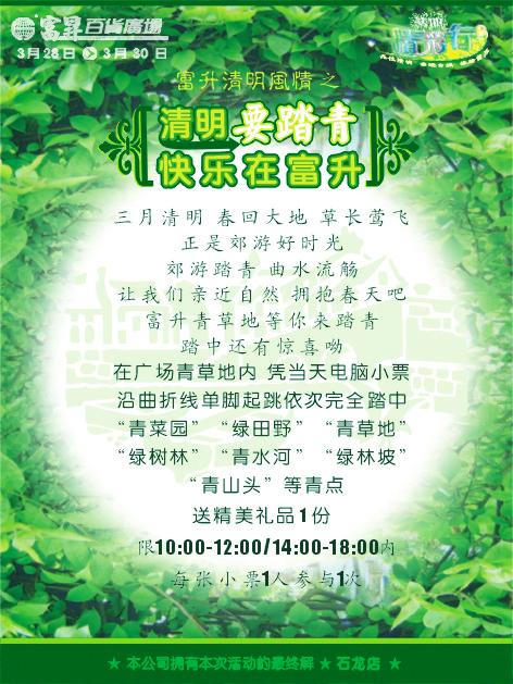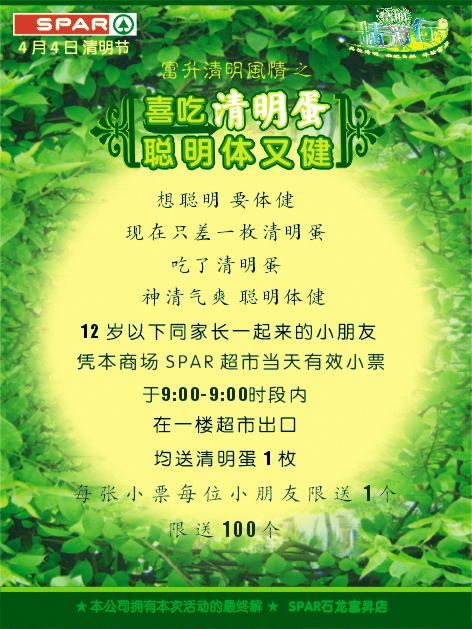 我从来就没有想过清明节商品能做什么促销,要做也是纸、香烛之类的,一般清明节我都是直接跳过的,所以很佩服老兄!