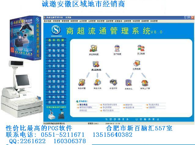 首先值得高兴的是.今天年初商超流通管理系统进入安徽市场..这标志着一个新的商业管理软件的层次帷幕拉开.这款软件是经过了广州商超公司二年多的开发和反复测试.和临床试验 ..2007年底以成功的在200多家大中小超市和商家应用.取得了很棒的效果和评价...其中很多一部分商家.是更换我们软件的客户.这说明我们的软件的特点是很多的..功能是完善的. 服务是到位的.现在它来到了安徽..将为我们安徽商家带来最好的服务和更多的经济效益. 广州商超现有一个软件开发部和一个商超POS机生产基地和POS耗材厂房.以全的产品和很好的价格来到安徽市场.为我们安徽的商家服务.