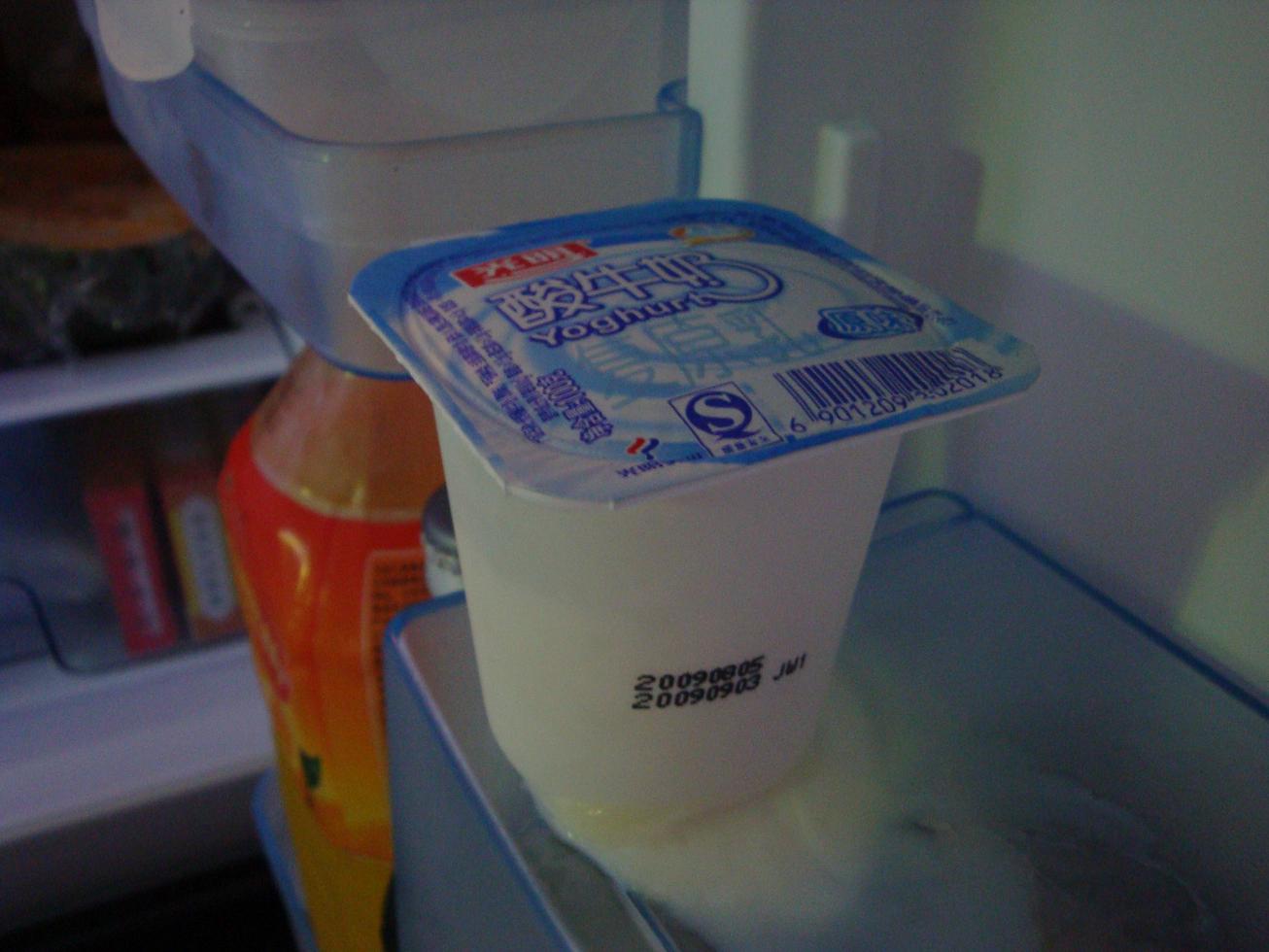 这是在8月22日拍的照片。请大家留心光明酸牛奶。