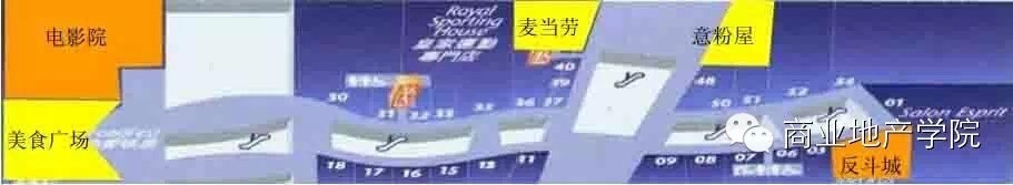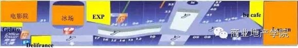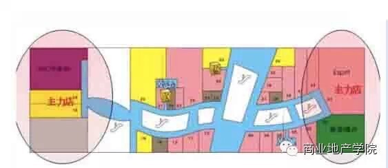 单动线设计,主力店在两端拉动客流,动线两侧为零售店铺;