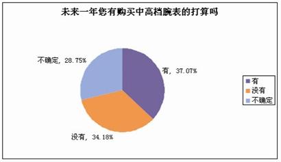 三成多的受访者表示在未来一年有购买中高档腕表的打算,有近三成的受访者不确定。其中,有购表欲望的人群中表示将购买欧米茄和浪琴的各占两成,可见中高端市场潜力巨大。