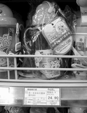 在3楼的百货区,陈先生为两岁多的女儿选了一个水壶。“价签上写的14.9元。”陈先生说,他和妻子都觉得比较划算。随后,又买了些其他商品,大约晚上9点,一行人结账出了超市。