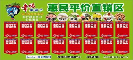 记者在武宜店入口看到,惠民平价滞销区的价格栏摆在显要位置。据家乐福武宜店员工介绍,门店会每天在入口处及店内向市民公示35个民生单品,品种涵盖肉类、水产、蔬菜、水果、油、蜜、蛋七大类。顾客可以清清楚楚看到当天的菜品信息。