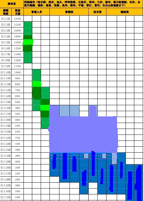 万达百货-城市薪酬标准,是副总到最底层员工的工资级别,各位可以对照看一下自己在哪一个员工级别,是否还有多少的上升空间、不要期望太大,只当娱乐一下就可。