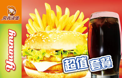 贝克汉堡有超值全家桶、尚选套餐、丰富配餐、儿童套餐、饮品、新地、贝克酷、缤纷小食等众多系列美食,口感纯正,让消费者众口可调。
