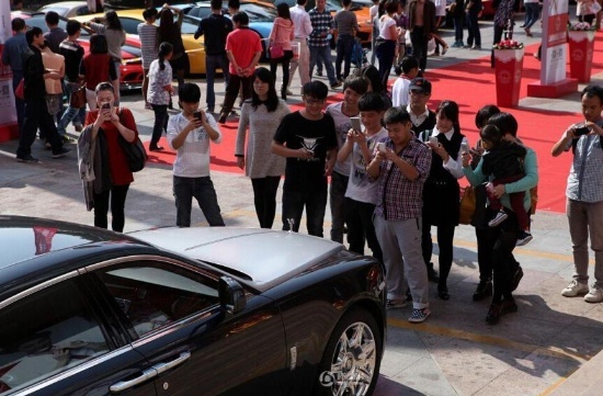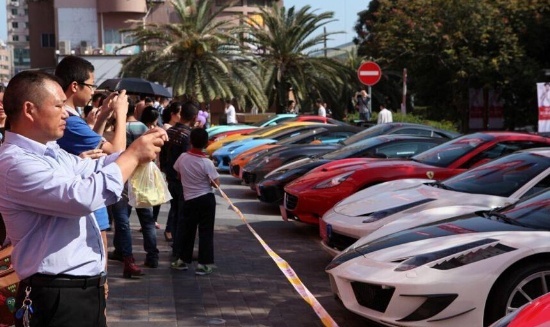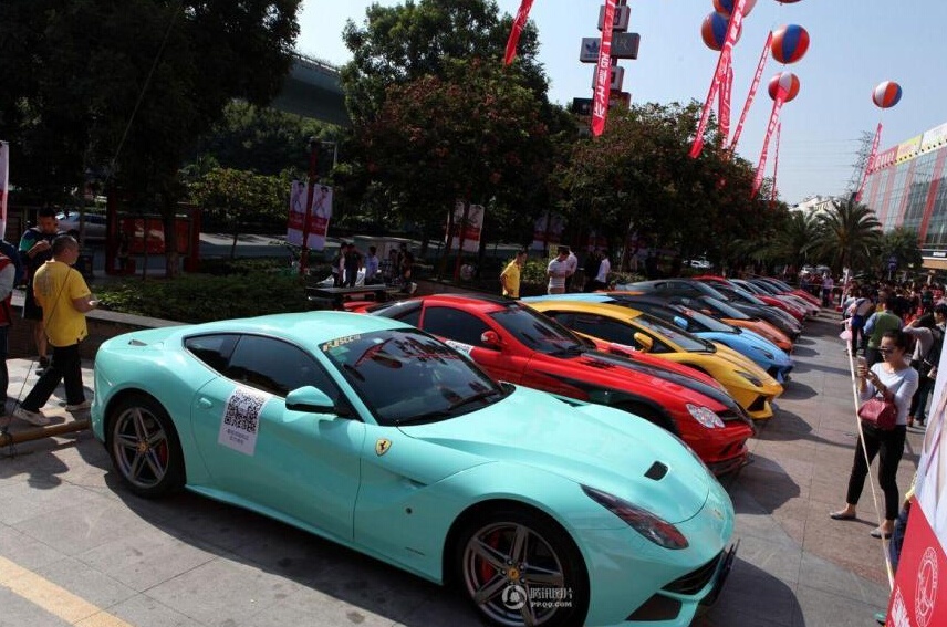 2014年11月22日,厦门,一商场开业土豪车扎堆贺喜,引民众围观拍照。