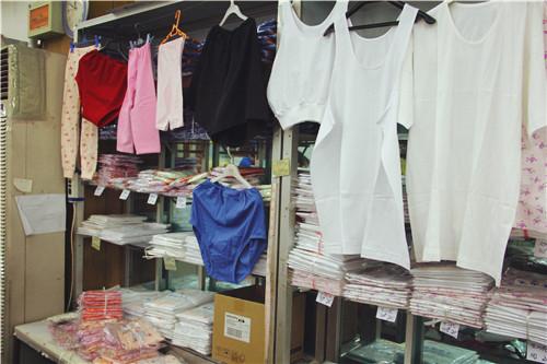 结实耐穿的纯棉跨栏儿背心、大裆内裤,是老年人的必备品。专柜挂出的“三点牌”内衣,是从80年代就有的本地品牌。千龙网记者 包萌 摄