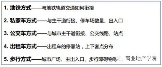 进得来包括交通组合方式、构成比例,关注来本质是回答项目的外部交通衔接方式、如何顺利搭接外部交通方式,不同等级购物中心交通方式差异化对待。