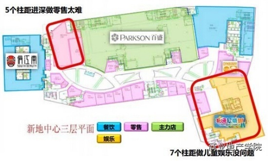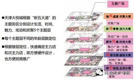 目的:保证目标消费者迅速找到目标楼层,同时逛的时候有品牌丰富度,主次搭配;深、面宽、硬件设计完全不一样,如儿童、电影院、百货、溜冰场;