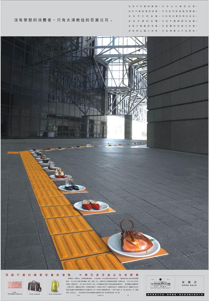 看看中兴百货的广告,同为中国人,大陆的经营者难道没有触动吗?请不要用业态不同之类的话来演示,问一问自己:你的商场真的沟通了消费者的内心吗?