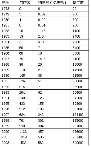 1979年 头三家店开张。数据:3店/200员工/700万美圆销售额