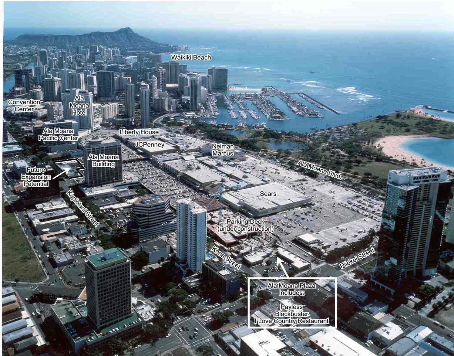 Ala Moana购物中心是世界上顾客最多,赢利水平最高的购物中心之一,目前正在进行大规模扩建。
