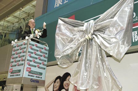 屈臣氏今年將開10店 屈臣氏位於銅鑼灣京華中心旗鑑店,昨日變身成「五顏六色」的個人護理店。樓高3層、佔地逾萬方呎的全新裝修店內,以粉紅、藍及黃3種色調,劃分成美容、健康及食品文具3個專區。屈臣氏護理店董事總經理戴保頓表示,會投資2000萬元,今年內將全港共170多間分店翻新成如斯新面貌。