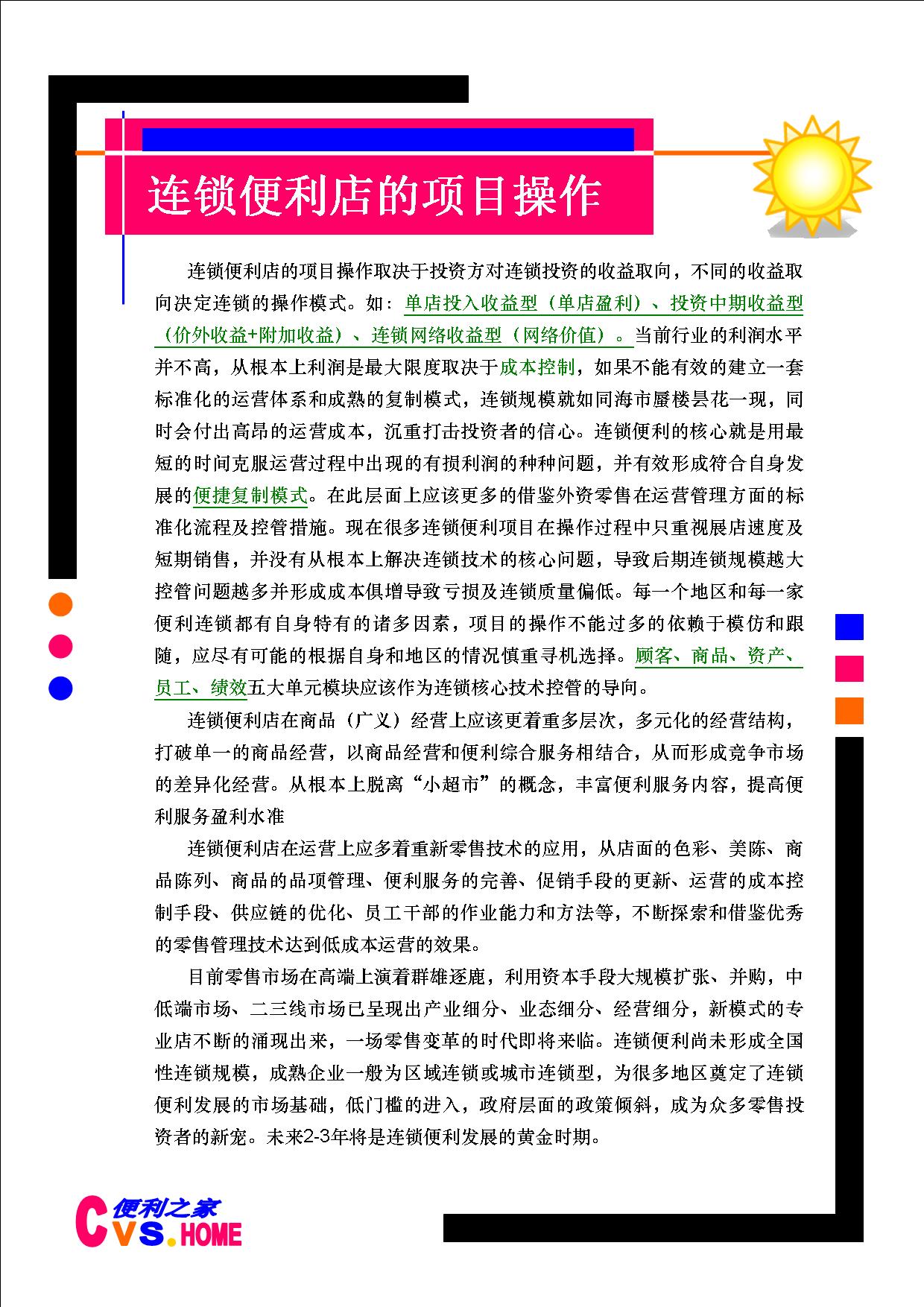我们同众多国际CVS大鳄打了多年交道,从中学到很多东西,也深感连锁CVS的经营是零售业中较难经营的一个业态,是一个诞生于美国,发展于亚洲经济发达并且人口密集的地区的业态,在今天的中国,虽然很多企业投资于此,但对这个业态所植根的经济基础和环境还不太了解
