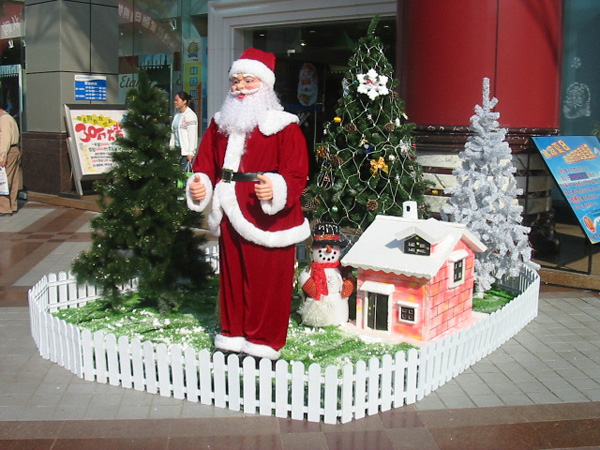 卖场红绸子的装饰我商场在2005年春节时用过,喜庆之气显而易见,和你的有一曲同工之妙.